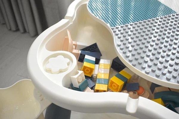 Bàn lego Umoo với 4 chân trụ siêu chắc chắn, giúp bé có vị trí ngồi vững vàng