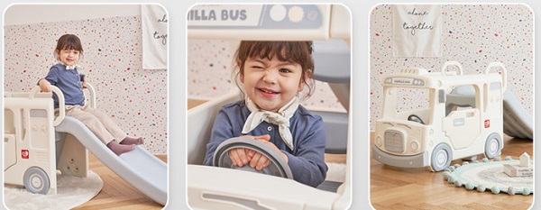 Cầu trượt xe bus kết hợp nhà chơi kèm vô lăng sinh động