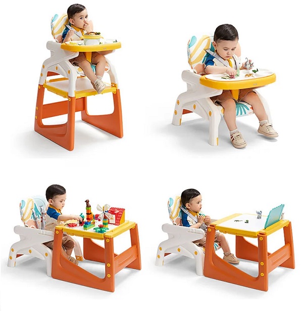 + Khay ăn có thể tùy chỉnh lên xuống và tháo rời nên rất thuận tiện cho việc vệ sinh và bạn có thể sử dụng làm ghế ngồi chơi, ghế ngồi học. Mặt ghế được bọc đệm đàn hồi tốt, ngồi thoải mái và không bị đau khi ngồi lâu.