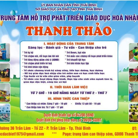 Thông tin liên hệ trung tâm dạy trẻ chậm nói Thanh Thảo ở Thái Bình