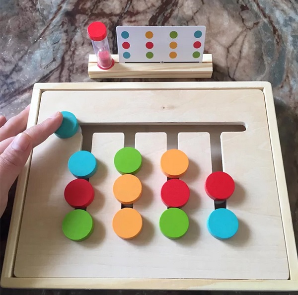 Đồ chơi học tập Montessori trượt xếp hình hai mặt kết hợp với 4 màu tươi sáng