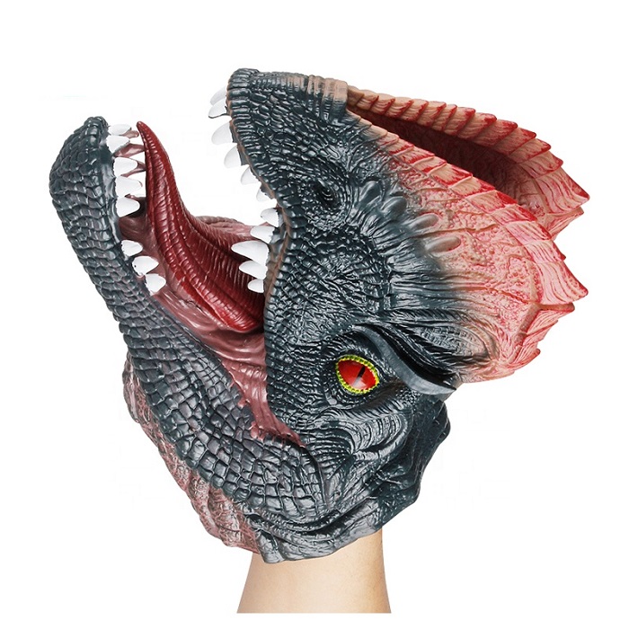 Đặt tay của bé vào đầu khủng long, miệng của nó sẽ mở và đóng lại bằng cách điều khiển các ngón tay