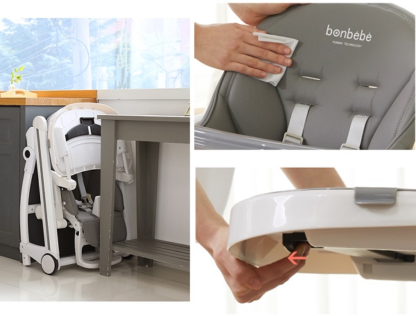 Ghế ăn dặm bonbebe điều chỉnh 5 nấc độ nghiêng từ 110 độ - 150 độ, phù hợp mọi thời điểm khi ăn, khi ngủ, khi uống sữa