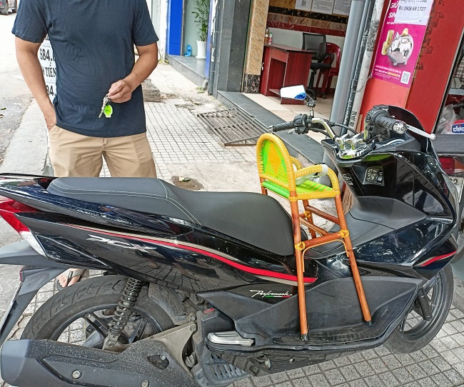 Ghế mây ngồi phía trước xe máy Pcx cho bé