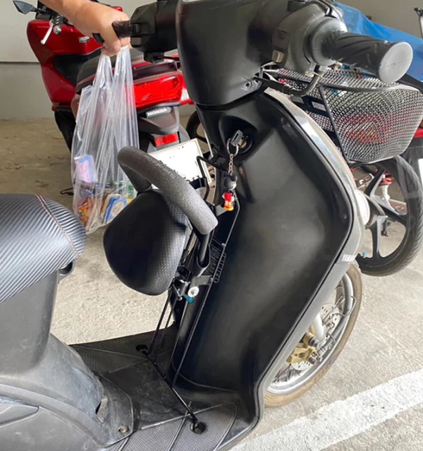 Ghế ngồi xe máy tay ga gấp gọn cho bé phía trước