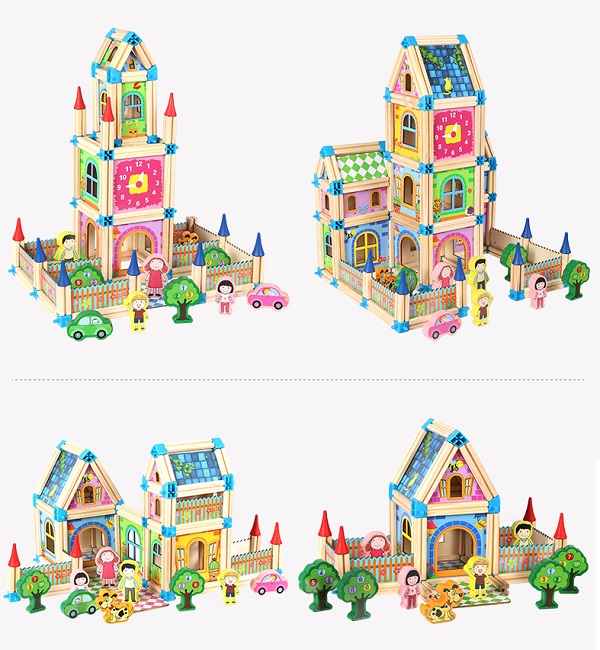 Bộ lắp ghép lego gỗ nhà biệt thự cho bé