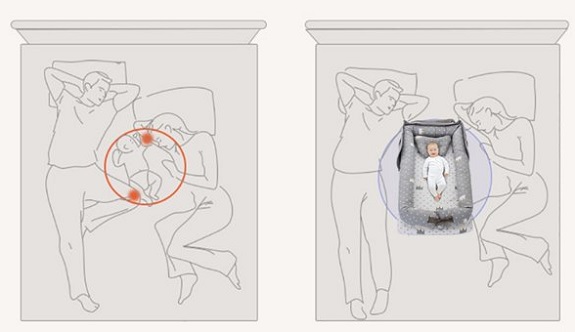 Tạo không gian ngủ riêng biệt cho em bé trên giường của cha mẹ