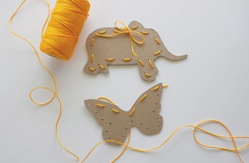 May vá tạo hình con vật cũng là một trong những món đồ chơi Montessori được các bé vô cùng yêu thích. Để làm món đồ chơi này vô cùng đơn giản, bạn chỉ cần chuẩn bị 1 hình con vật + 1 dập lỗ + len là bé đã có thể sáng tạo rồi.