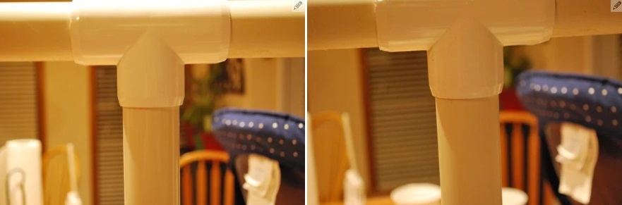- Bạn tiến hành dùng keo để dán các khớp nối và ống nhựa lại với nhau. Sử dụng khoan để thêm phần chắc chắn cho thanh chắn.