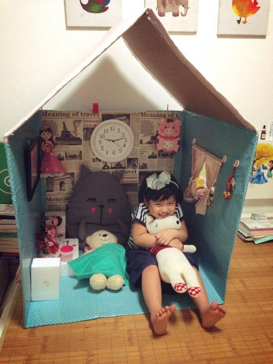 1. Làm nhà cho bé từ thùng Carton: