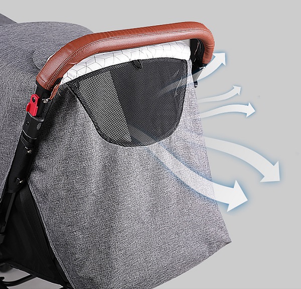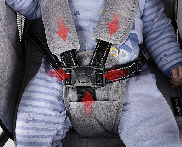 Đai 5 điểm an toàn, kết hợp cửa sổ lưới thoáng khí, dễ dàng quan sát trẻ từ bên trên