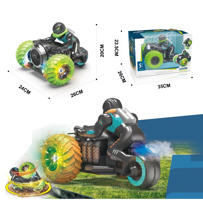 Chức năng tiến, lùi, rẽ trái, rẽ phải, bốc đầu, bốc đít, lật lộn nhào, đèn led phát sáng, xoay 360 độ
