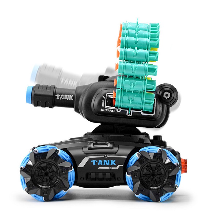 Xe tăng di chuyển tiến, lùi, rẽ trái, rẽ phải, điều chỉnh nóng lên xuống, bắn đạn xốp, xe xoay 360 độ